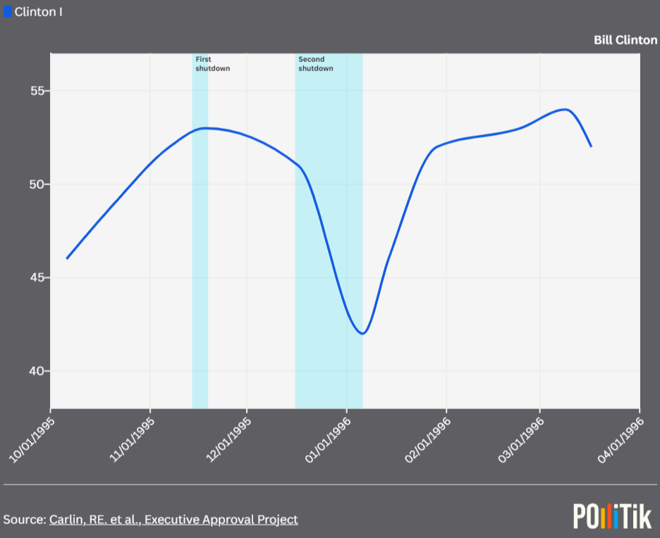 Clinton and Trump’s 1st term saw substantial and long-term recovery in their approvals, in part because their governments were shut down when the economy was improving.